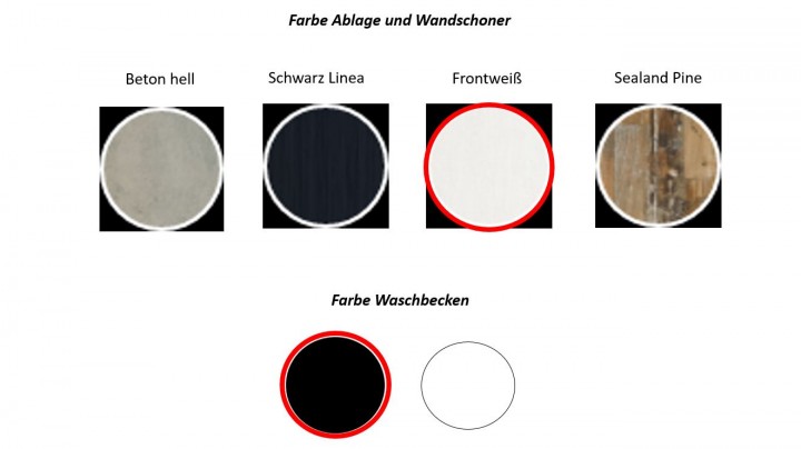 Farben & Muster für Ablage & Wandschoner: Beton hell, Schwarz Linea, Frontweiß, Sealand Pine