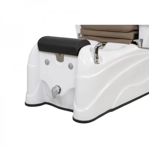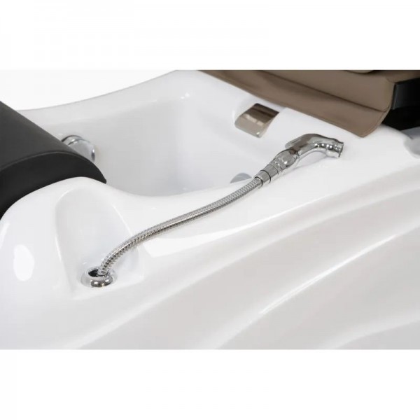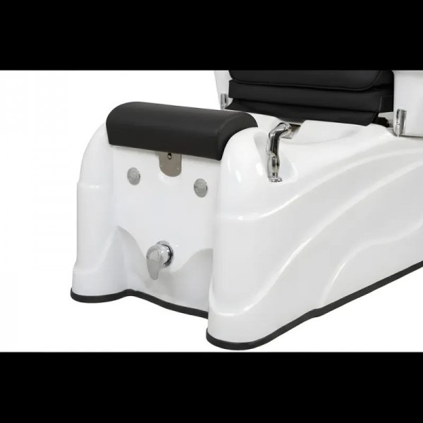 Der Stuhl ist ausgestattet mit Vibrations-, Shiatsu- und Knetmassage, steuerbar über eine benutzerfreundliche Fernbedienung. Rückenlehne lässt sich elektrisch verstellen, dazu verschiebbarer Sitz für besten Komfort. Inklusive gepolsterter Fußstütze, Wasserhahn, Abfluss sowie Anschlüssen für Warm- und Kaltwasser – alles für professionelle Pediküre oder Wellness-Anwendungen.