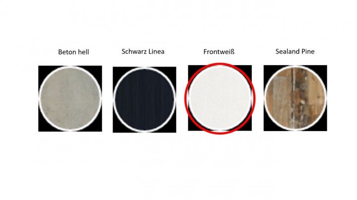 Farben & Muster für Ablage & Wandschoner: Beton hell, Schwarz Linea, Frontweiß, Sealand Pine